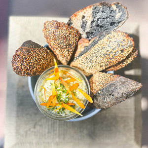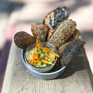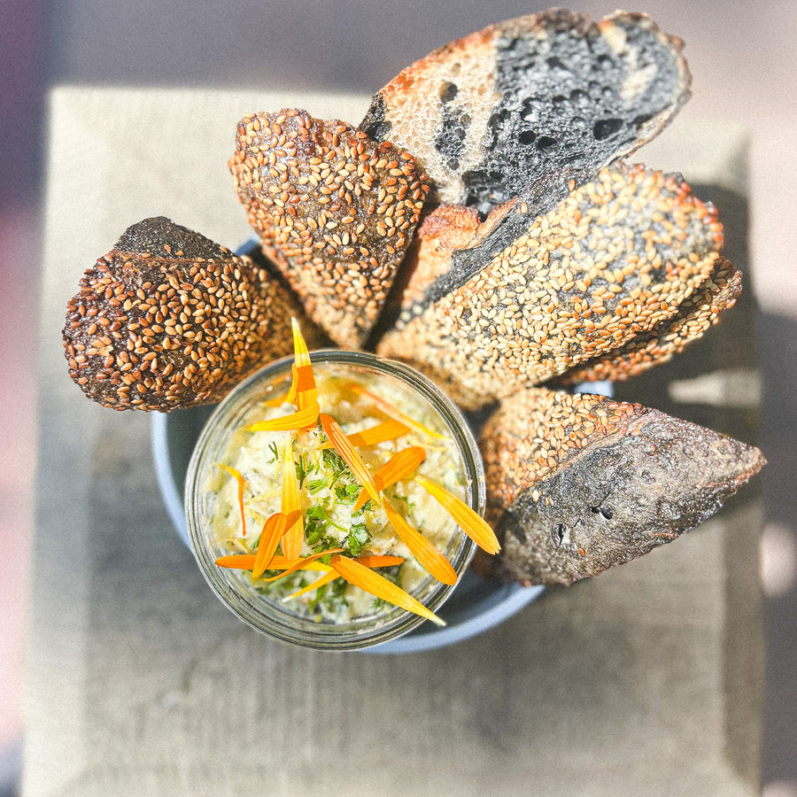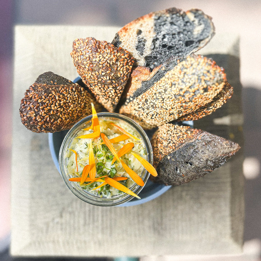 golden potatoes, celery, cornichon, lemon aioli, dill, charcoal sourdough
